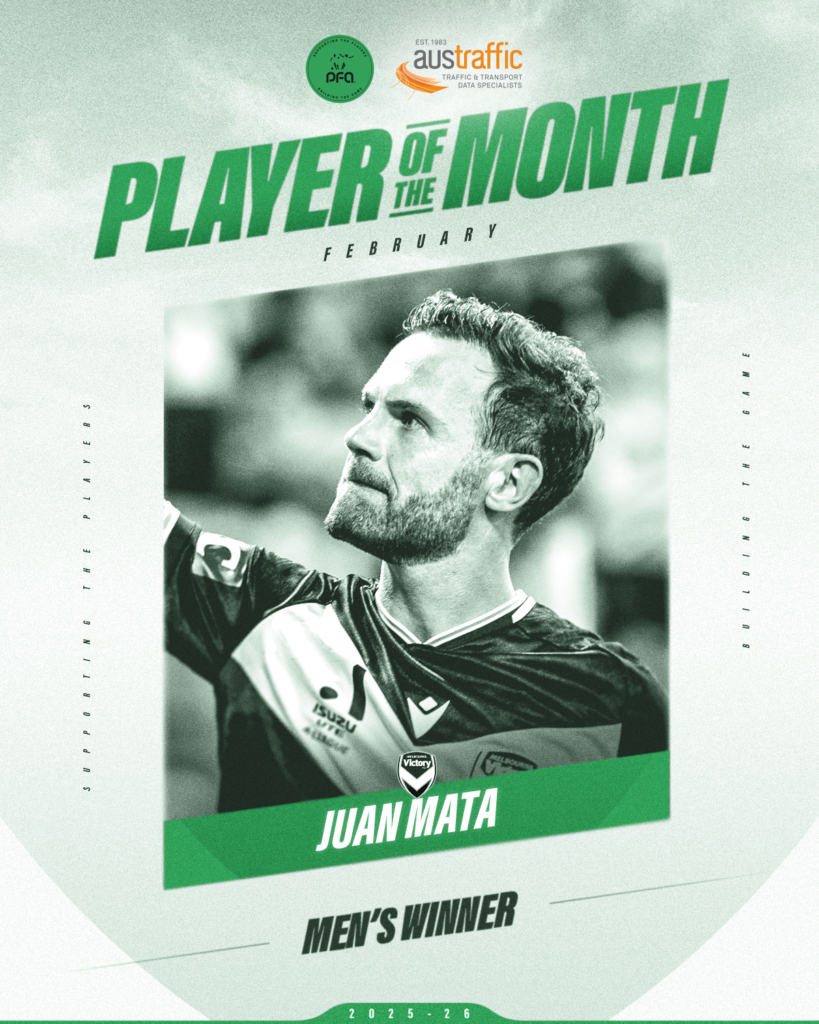 Mata’s incredible season at Victory continued throughout February, becoming the first player this season to be voted the winner by their peers for the award on multiple occasions after starring for his side during a four game unbeaten run.